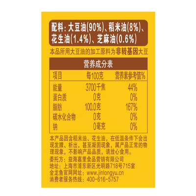金龙鱼精炼一级大豆油900ml(非转基因)