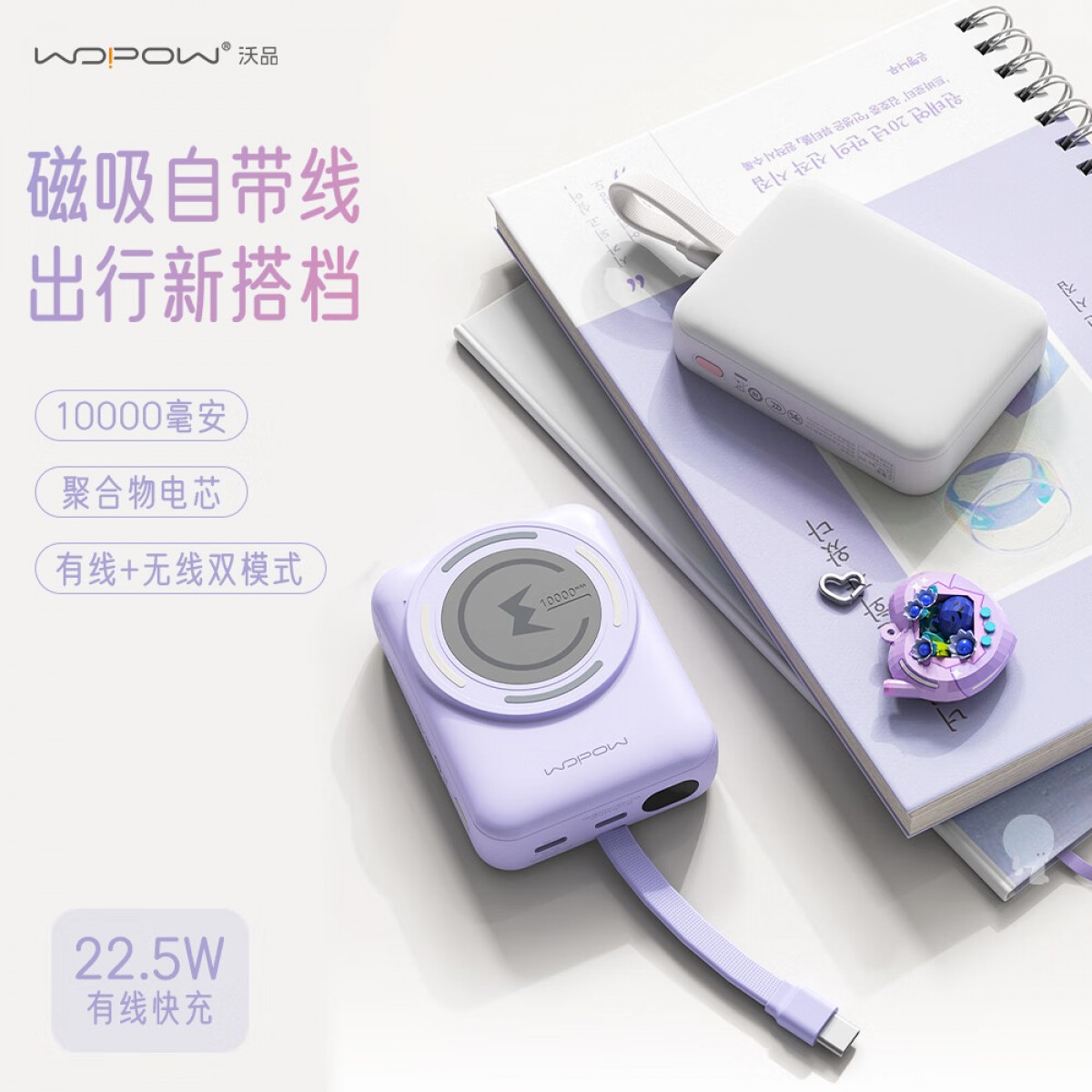 沃品 磁吸无线充自带线快充移动电源 10000mAh PW63 (电商款)