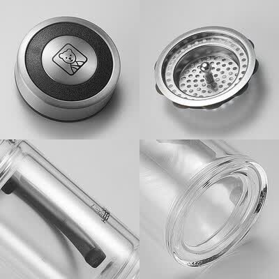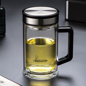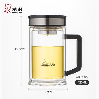 希诺 双层玻璃杯带手柄商务高档办公室泡茶杯过滤网透明杯 XN-7006