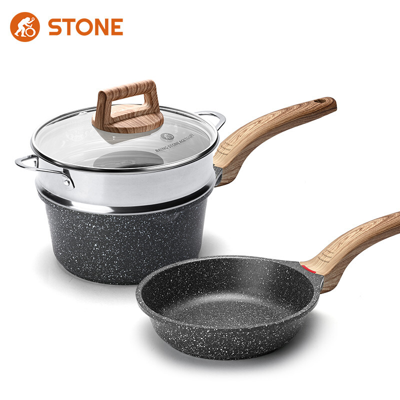 司顿 不粘奶锅配蒸格+ 油嘴不粘煎盘(无盖)套装 STH2201A-C2