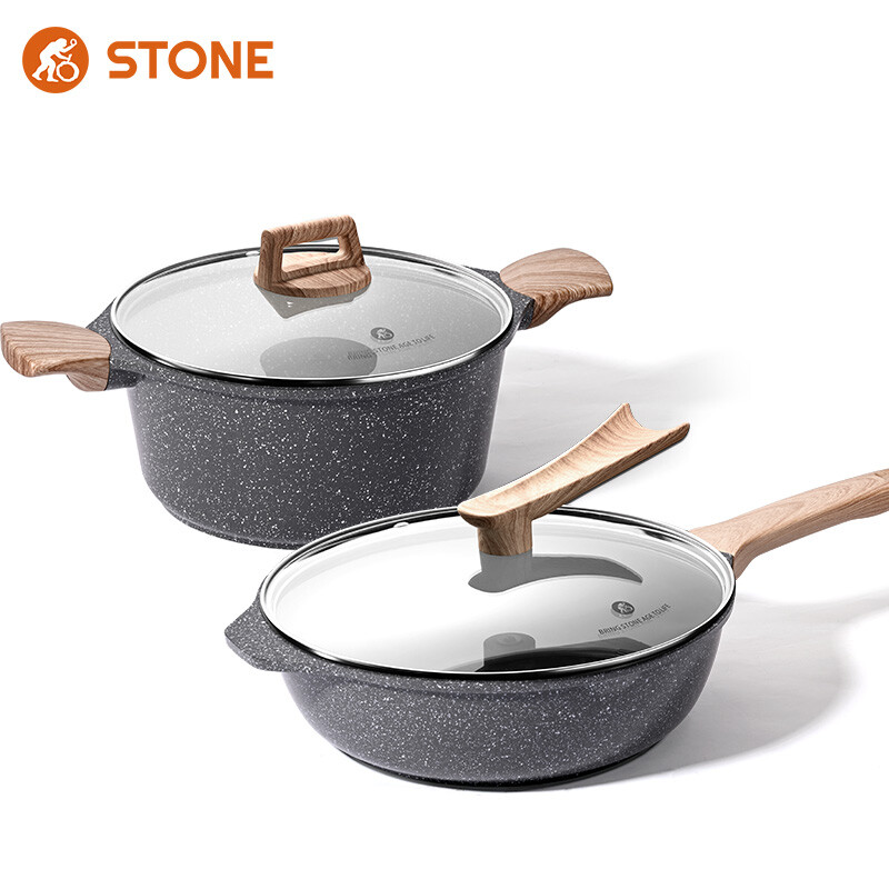 司顿 平底深煎不粘炒锅 + 双耳不粘汤锅 套装 STH2203A-C1