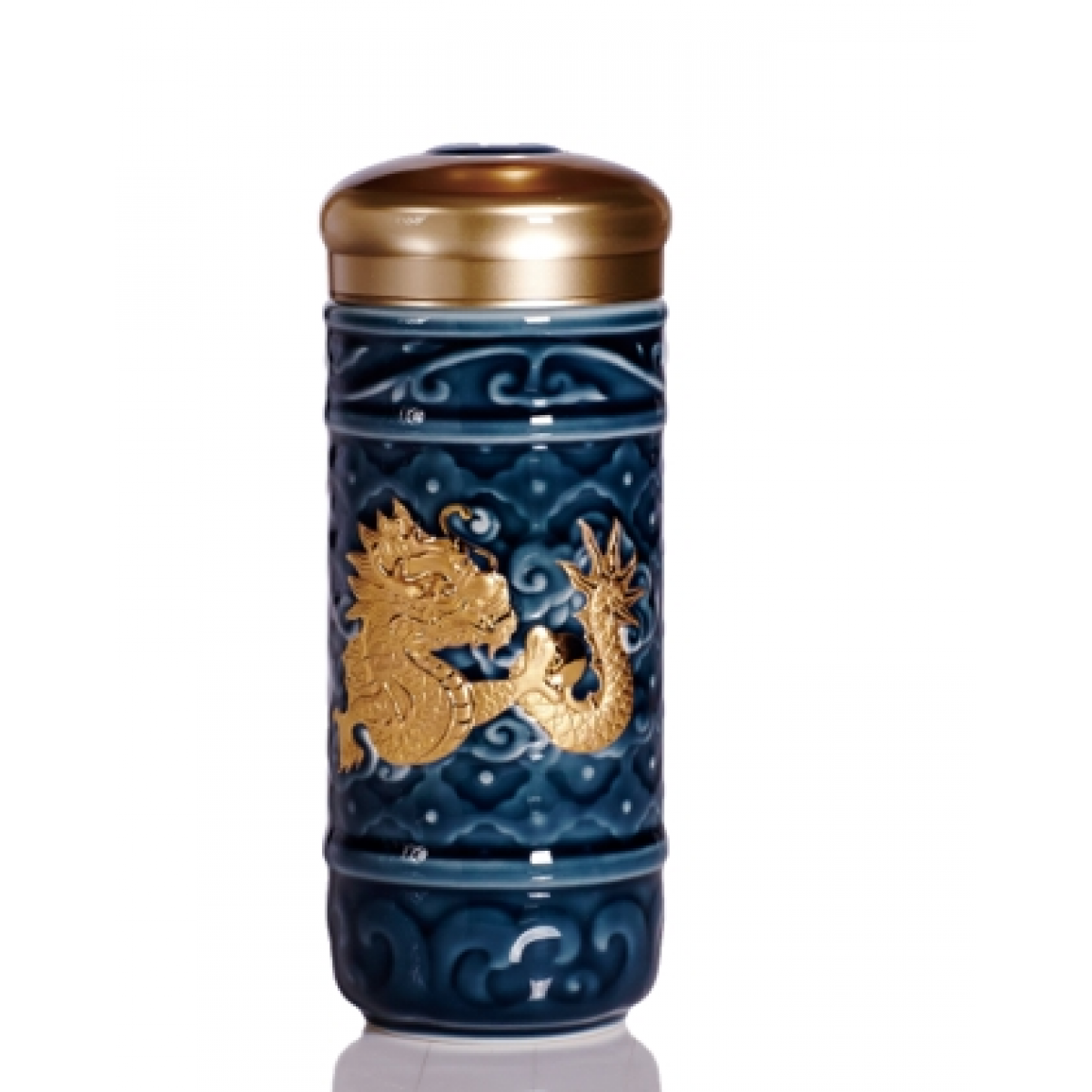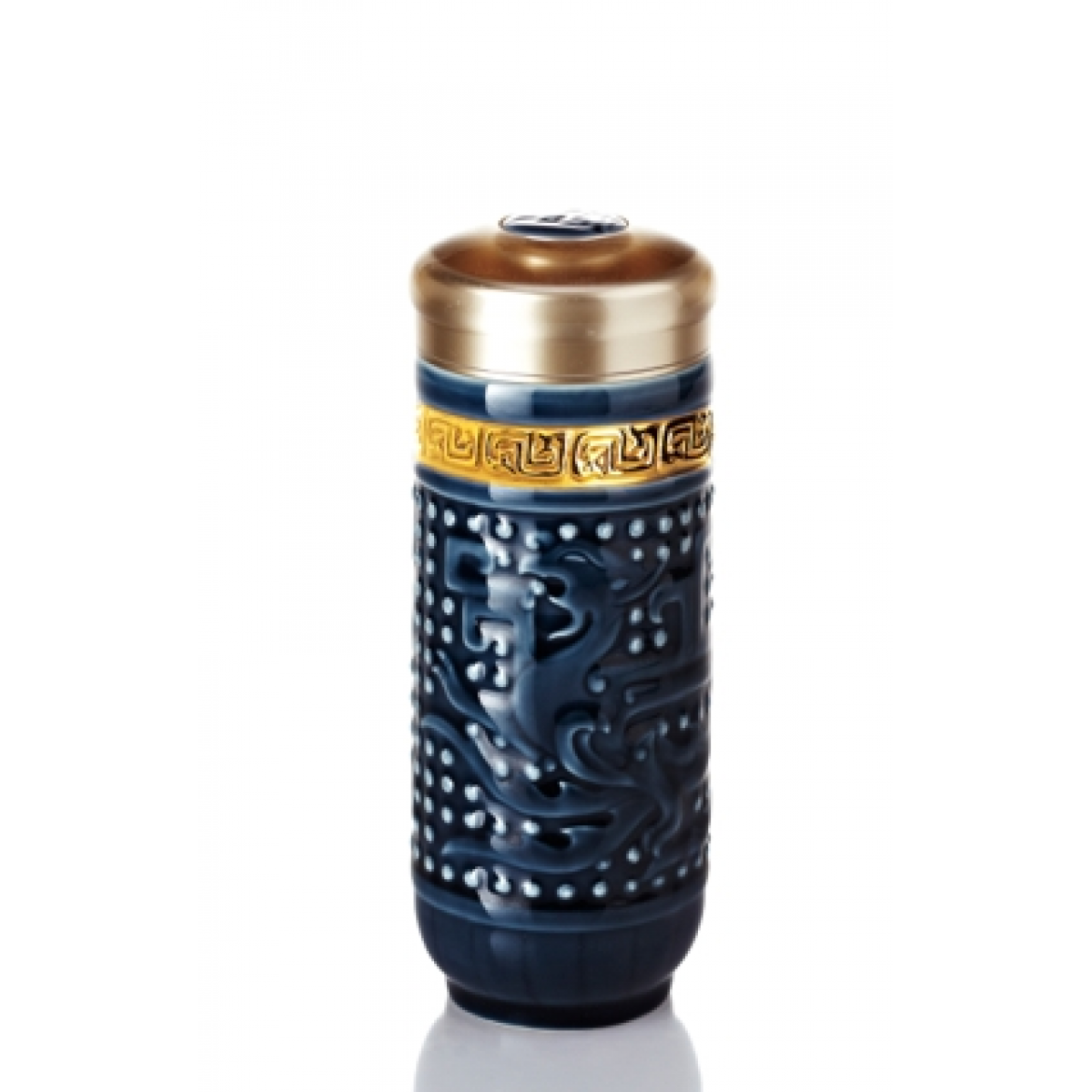 乾唐轩 飞跃祥龙随身杯 330ml (双层) 宝石蓝+鎏金