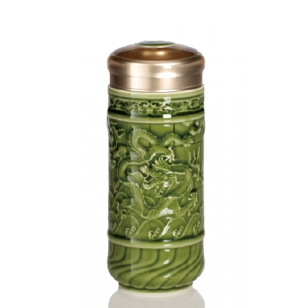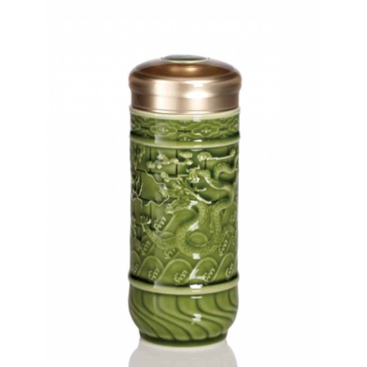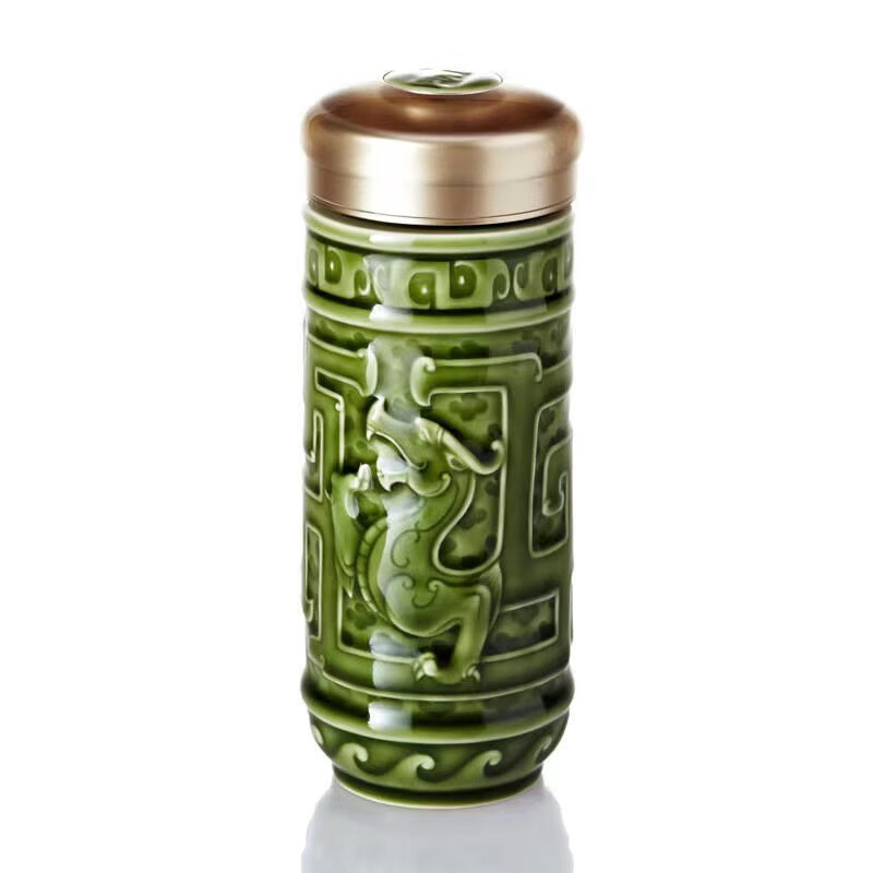 乾唐轩 飞跃祥龙随身杯 330ml (双层) 耀州绿