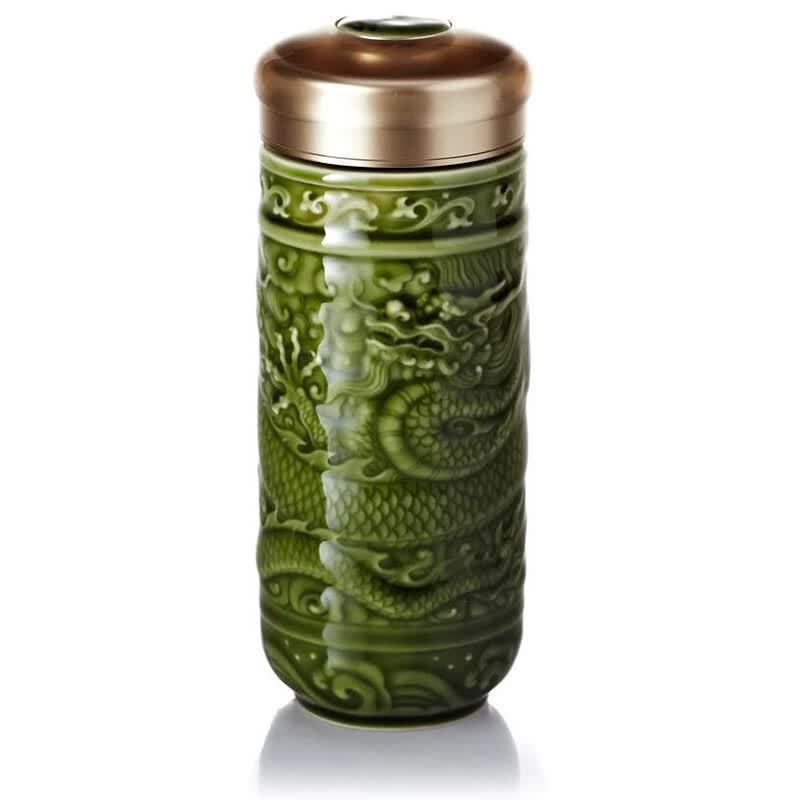 乾唐轩 九龙壁和谐龙随身杯 (大) 330ml (双层) 耀州绿