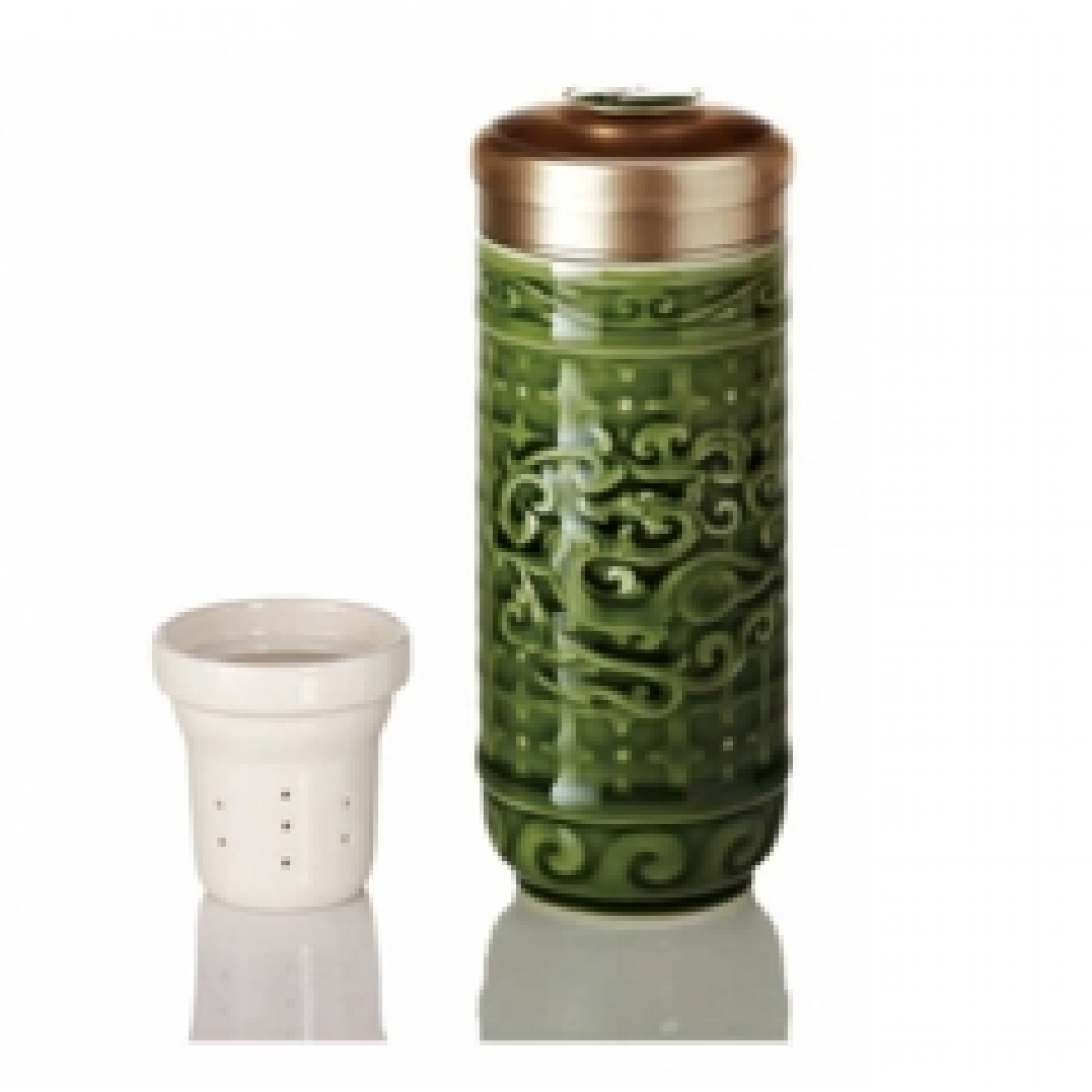 乾唐轩 富贵祥龙随身杯(大)(附茶漏)330ml (双层)耀州绿
