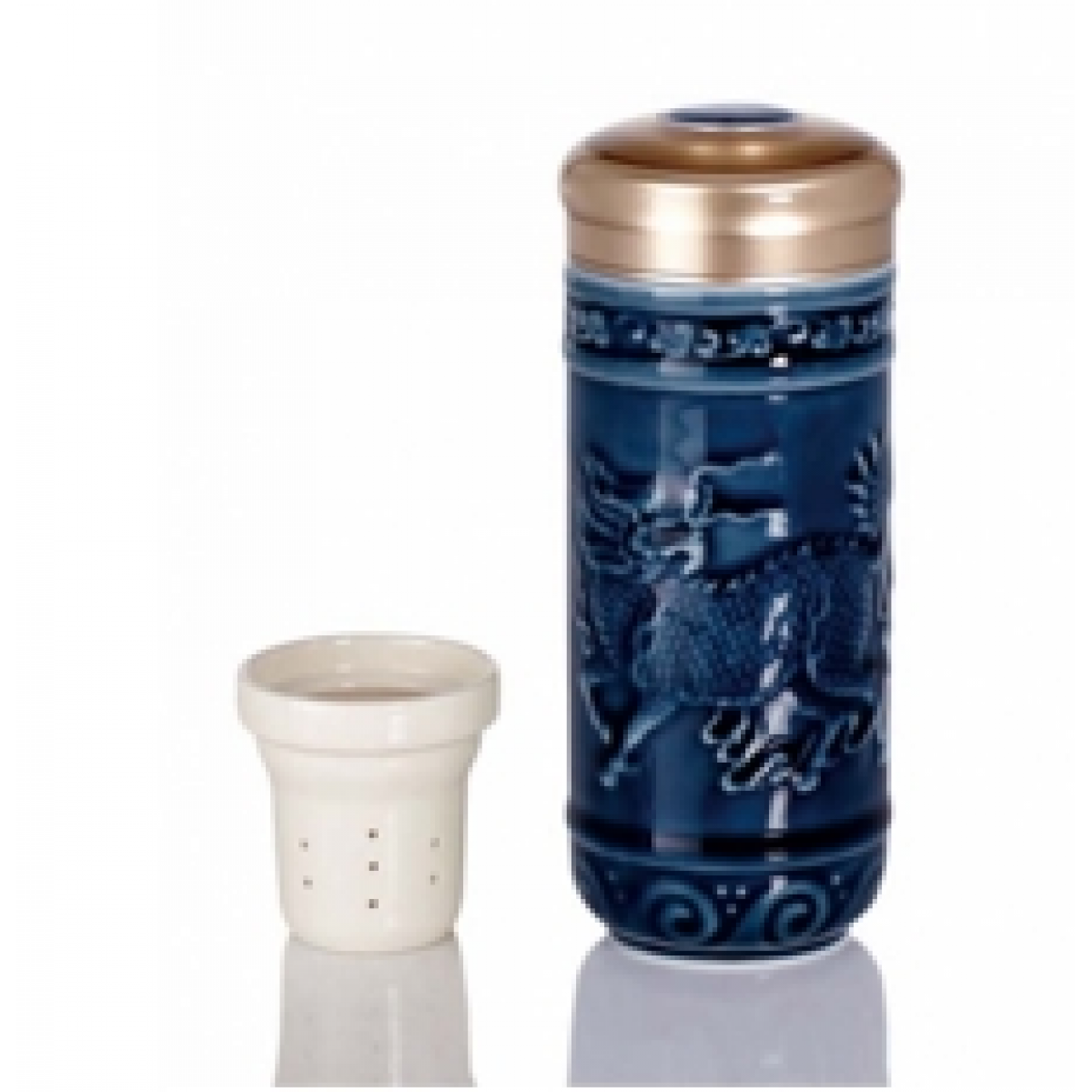乾唐轩 皇家骏马随身杯(大)(附茶漏)330ml (双层)宝石蓝+鎏金