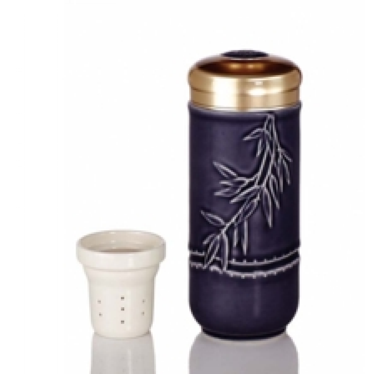 乾唐轩 富贵金竹随身杯(大)(附茶漏)330ml (双层)灰蓝