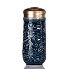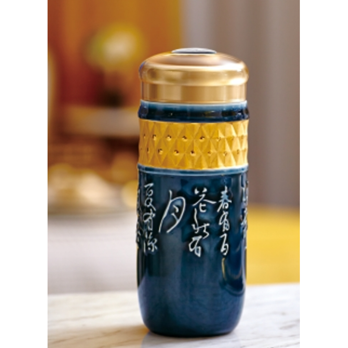 乾唐轩 清心随身杯 330ml (双层) 宝石蓝+鎏金