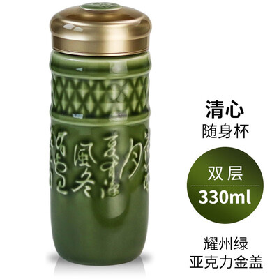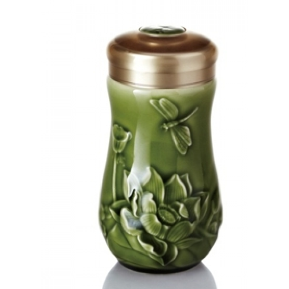 乾唐轩 蜻蜓夏荷随身杯 (小) 400ml (单层) 耀州绿