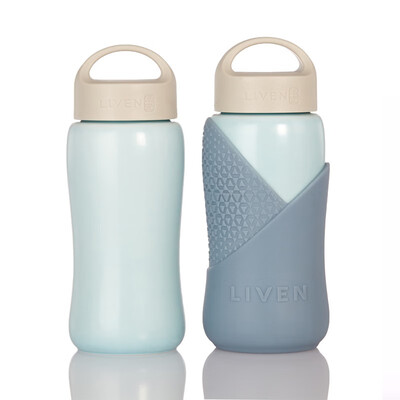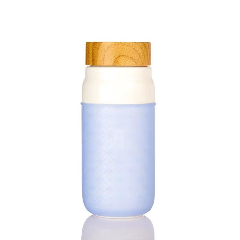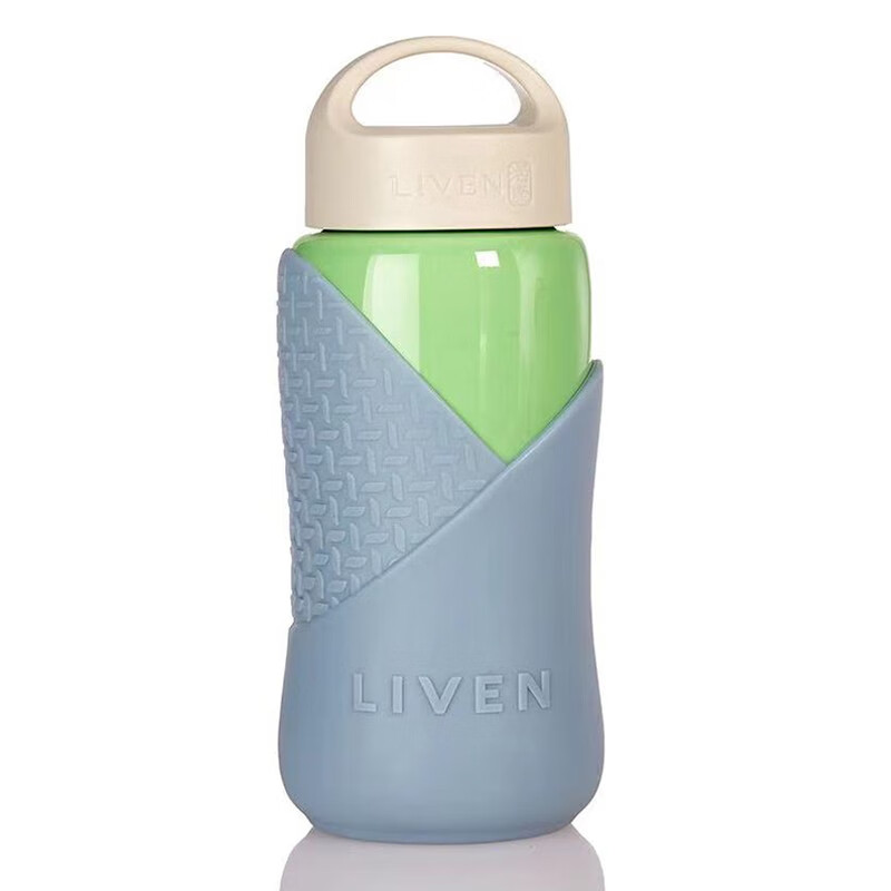 乾唐轩 LIVEN水德随身杯(木纹盖) 330ml(双层)透明白+彩釉贴花