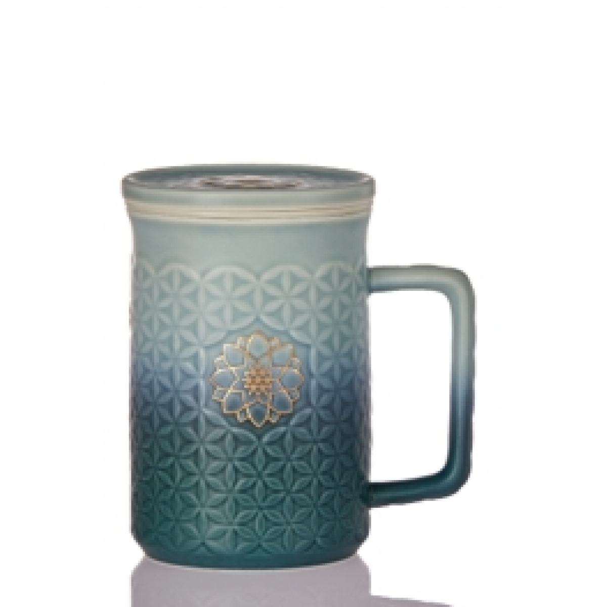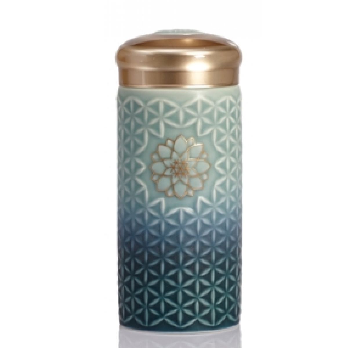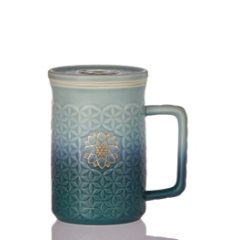 乾唐轩 生命之花(阳光)随身杯 300ml(双层)薄荷绿/无光孔雀绿渐层+手工描金