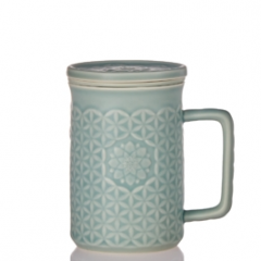 乾唐轩 生命之花三件杯 460ml 耀州绿+碧玺负离子