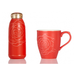 乾唐轩 永恒玫瑰随身杯 / 咖啡-红茶两用杯套组 350ml (单层)+350ml