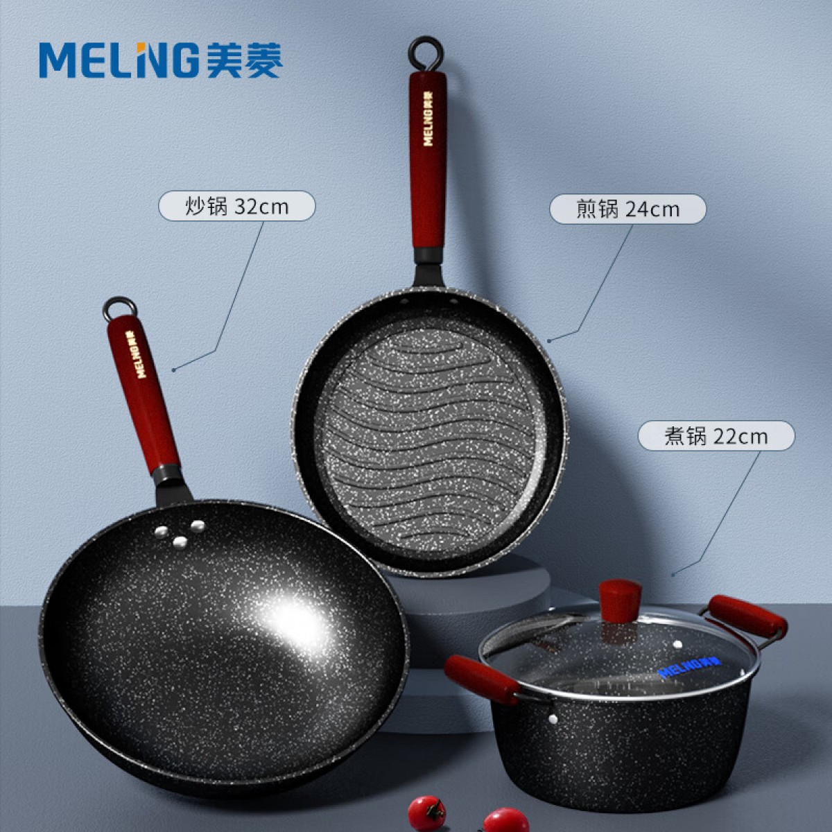美菱 麦饭石色不粘锅套装 MGJ-LC3211