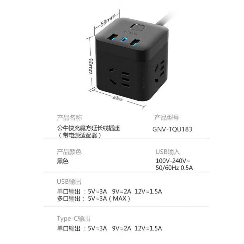 公牛(BULL)小魔方转换器 GNV-TQU12W