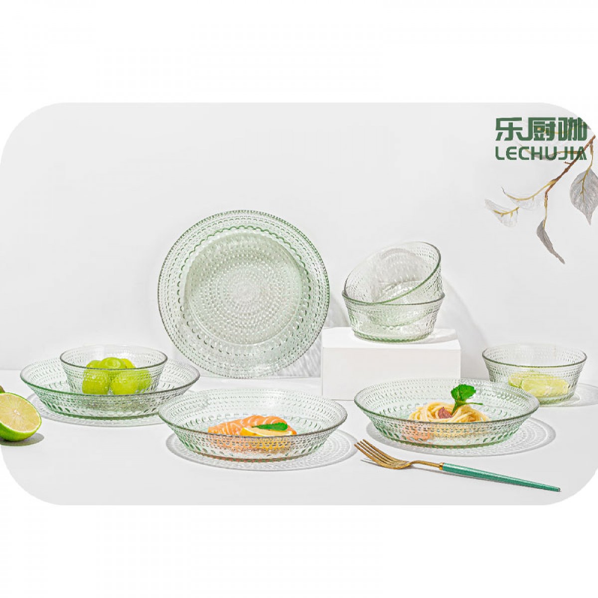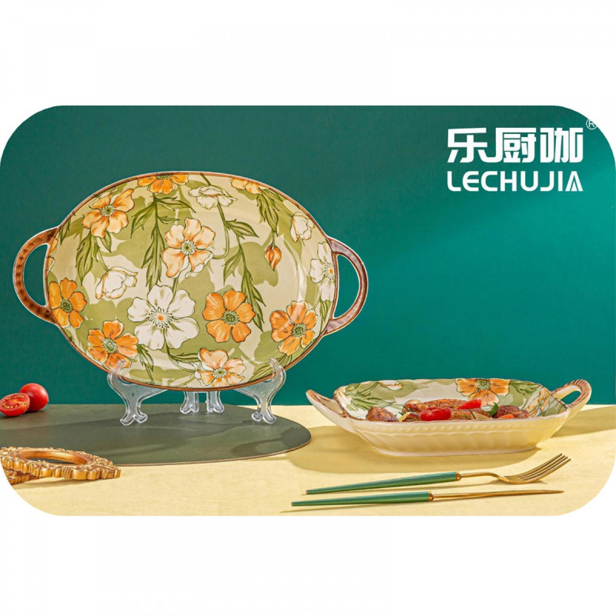 乐厨咖 繁花似锦陶瓷鱼盘两件套 鱼盘*1/方盘*1 YTFHSJ/L2