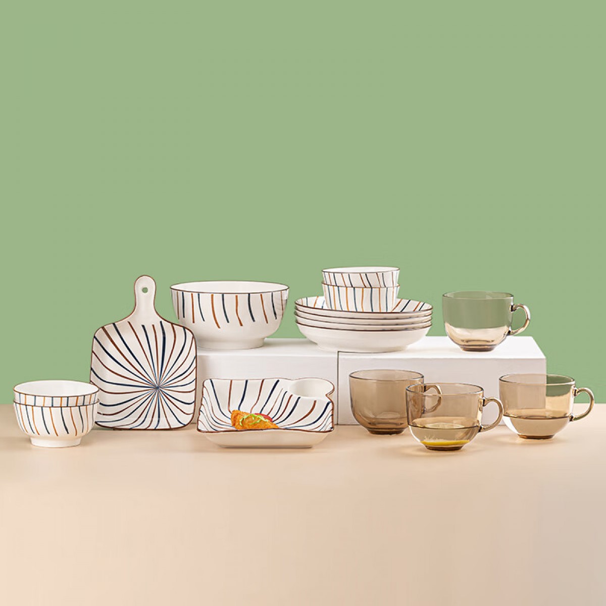 可美瑞特(COMATE)沉鱼落雁二十件套 大碗1400ml*2+碗360ml*6+圆盘*6+手柄盘*1+饺子盘*1+奶杯480ml*4 YTCYLY/L20