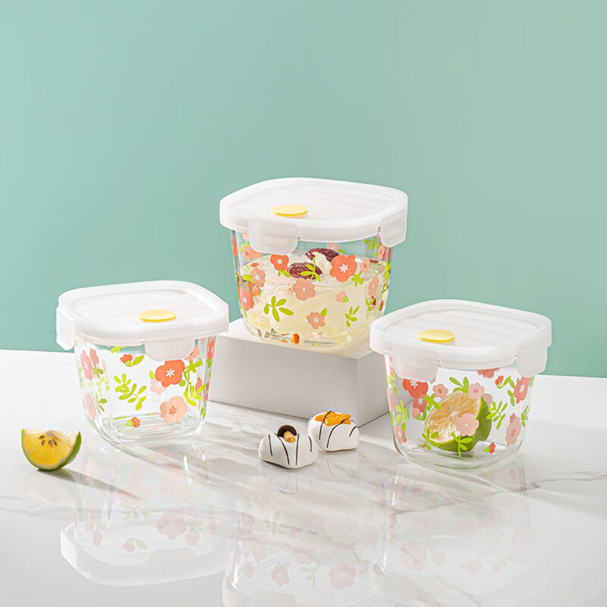 可美瑞特(COMATE) 小红花保鲜盒三件套 保鲜碗800ml;杯子300ml YTXHHBXH/L3