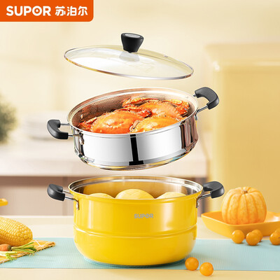 苏泊尔SUPOR 真味鲜不锈钢双层复底蒸锅(活力黄)EZ28BS08