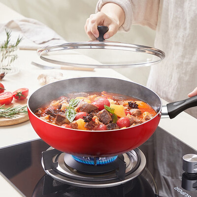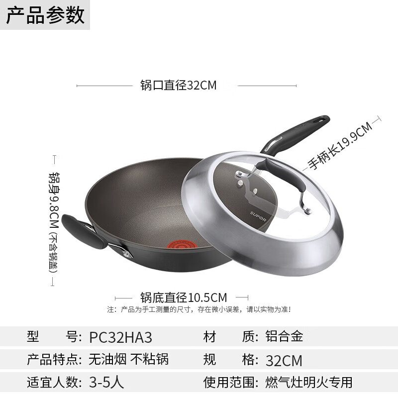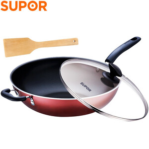 苏泊尔(SUPOR)火红点钛金刚无油烟炒锅.钢玻盖 PC32HA3(有副手)32cm