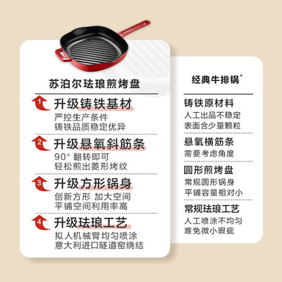 苏泊尔(SUPOR) 珐琅煎烤锅·浆果红 EJ24JAF01-R 24cm
