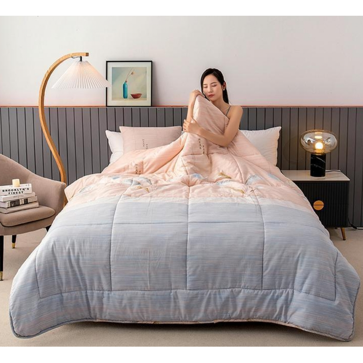恒源祥 远方的粉蚕丝子母被 TSB1049 600+1100g 200*230cm