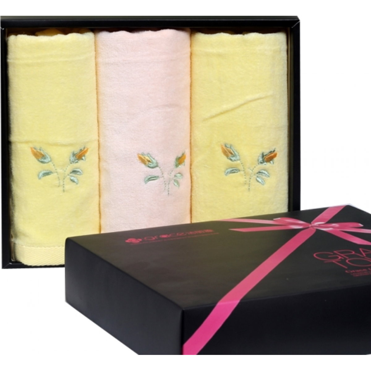 洁丽雅 纯棉郁金香礼盒三条装强吸水舒适面巾 6223 x2 78*34
