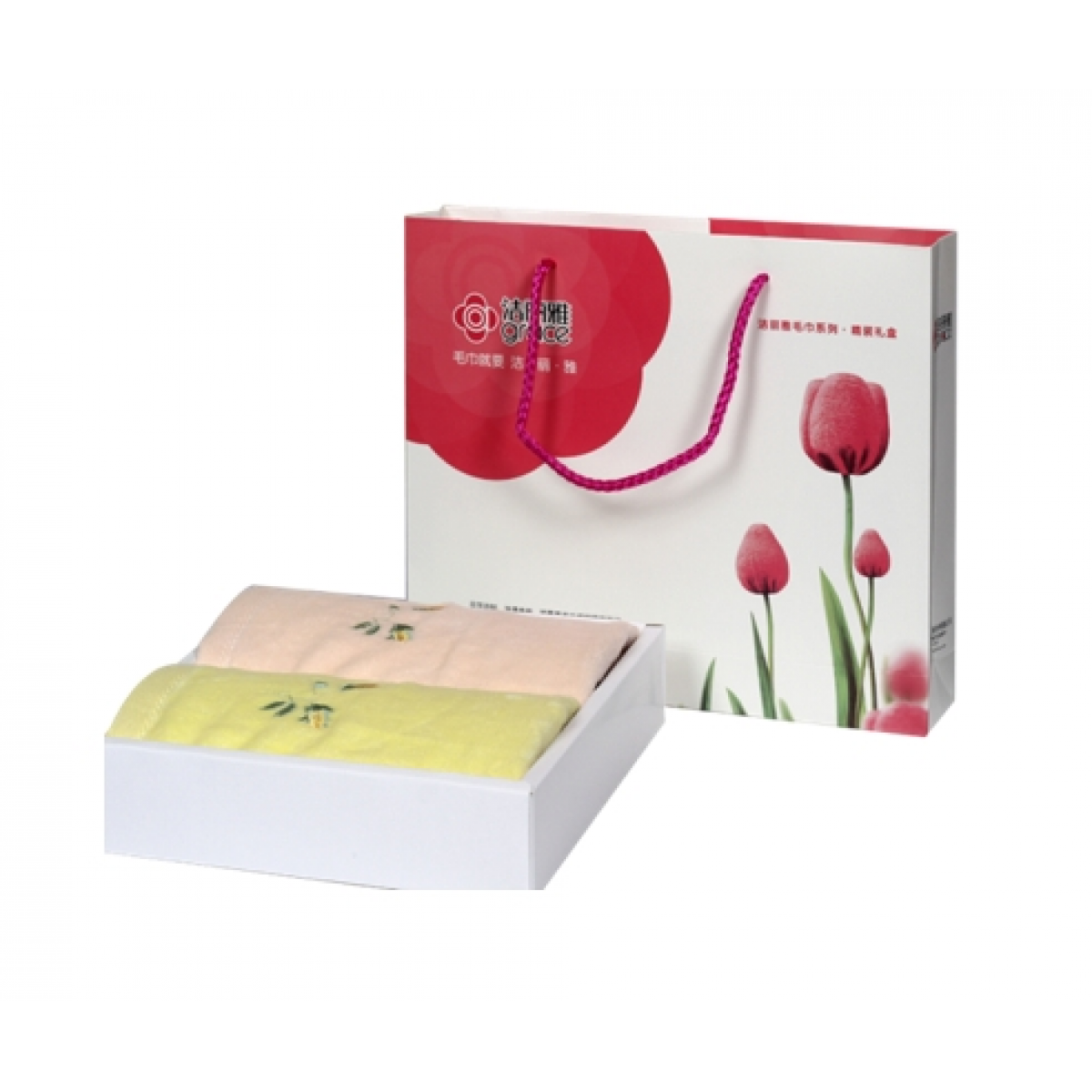 洁丽雅 纯棉郁金香礼盒两条装强吸水舒适面巾 6145 72*34