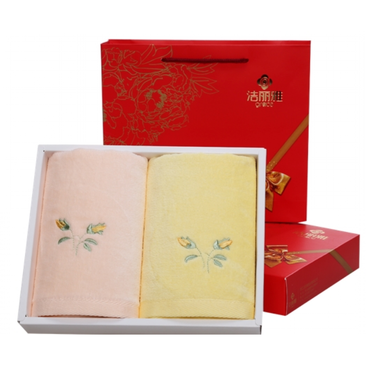 洁丽雅 纯棉喜庆商务礼盒两条装 强吸水舒适面巾 6223 x2 78*34