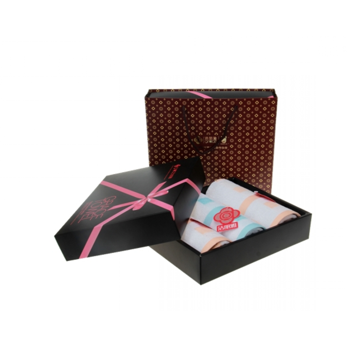 洁丽雅 纯棉黑色蝴蝶结礼盒三条装强吸水舒适面巾 6145 72*34
