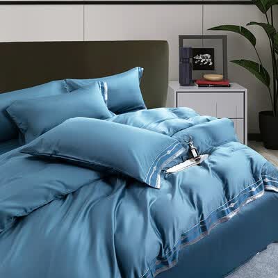 金丝莉 奢享全棉贡缎四件套 星空兰 被套200x230cm