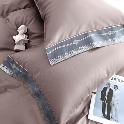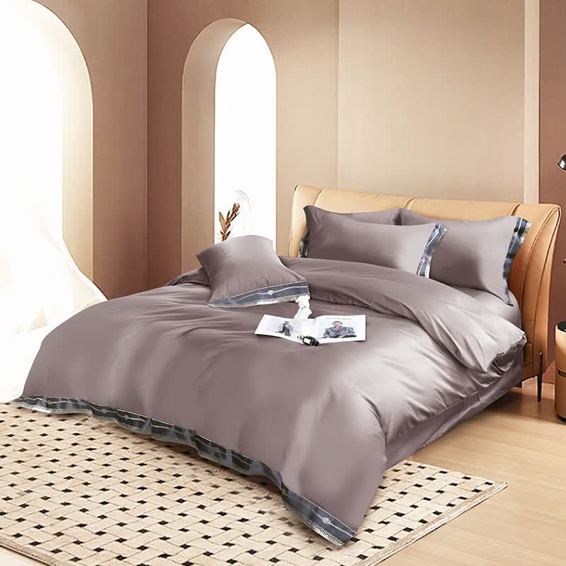 金丝莉 奢享全棉贡缎四件套 香槟灰 被套150x200cm