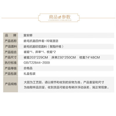 富安娜(FUANNA)磨毛四件套-玲珑漫语 203*229cm
