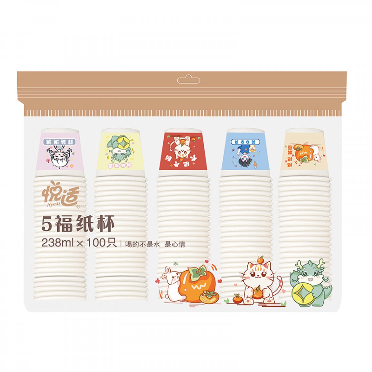 悦适 一次性纸质水杯238ml*100只*1袋 BZC100(袋装)