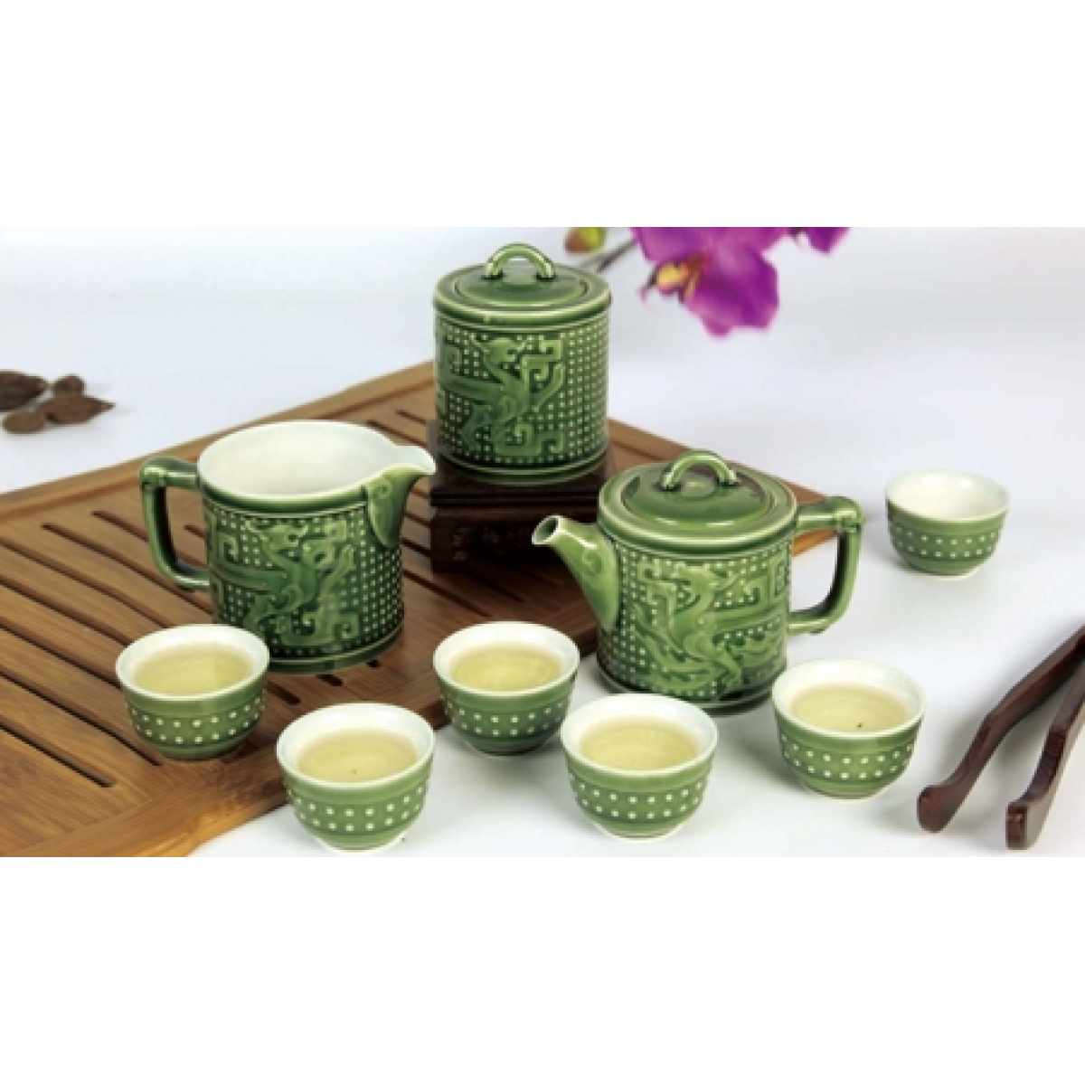 乾唐轩 大茶壶茶具 壶1070ml / 杯190ml 雪晶绿紫 (1壶6杯)