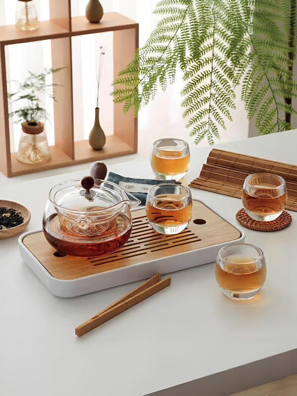康宁 逍遥系列茶具六件组 (500ml(壶)*1+70ml(杯)*4 + 29cm*15cm (茶盘) *1) WK-BH06P81C-JY/KZ