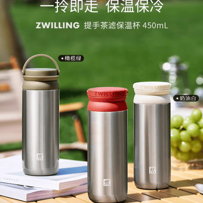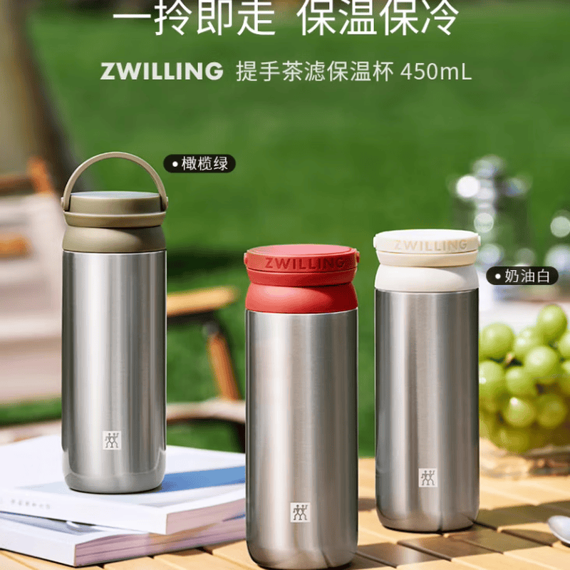 双立人(ZWILLING)提手保温茶滤杯316L不锈钢内胆 450ml/ 1029000(红色) 1029001(白色) 1029002(绿色)