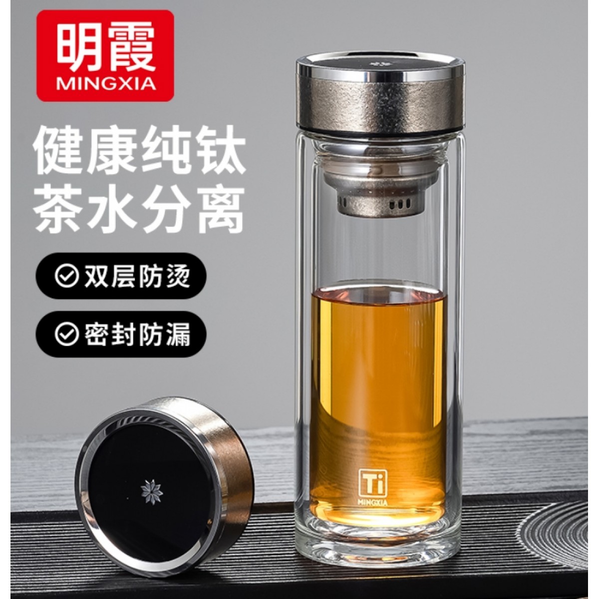 明霞 纯钛双层玻璃杯 380ml MXT03-380