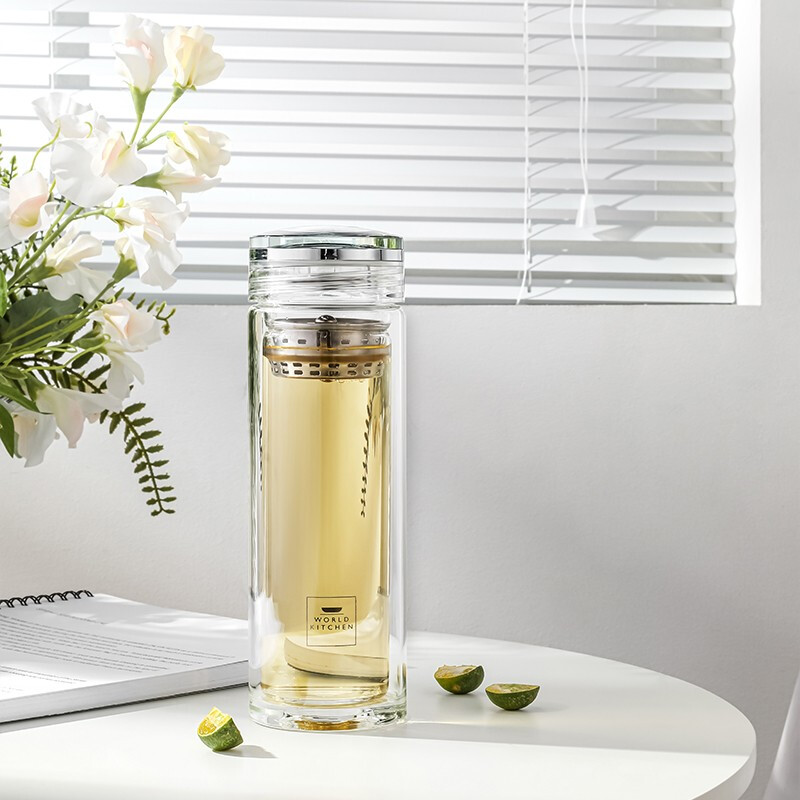 康宁 钛盖茶水分离玻璃杯350ml WK-BH35J131C-JY/KZ