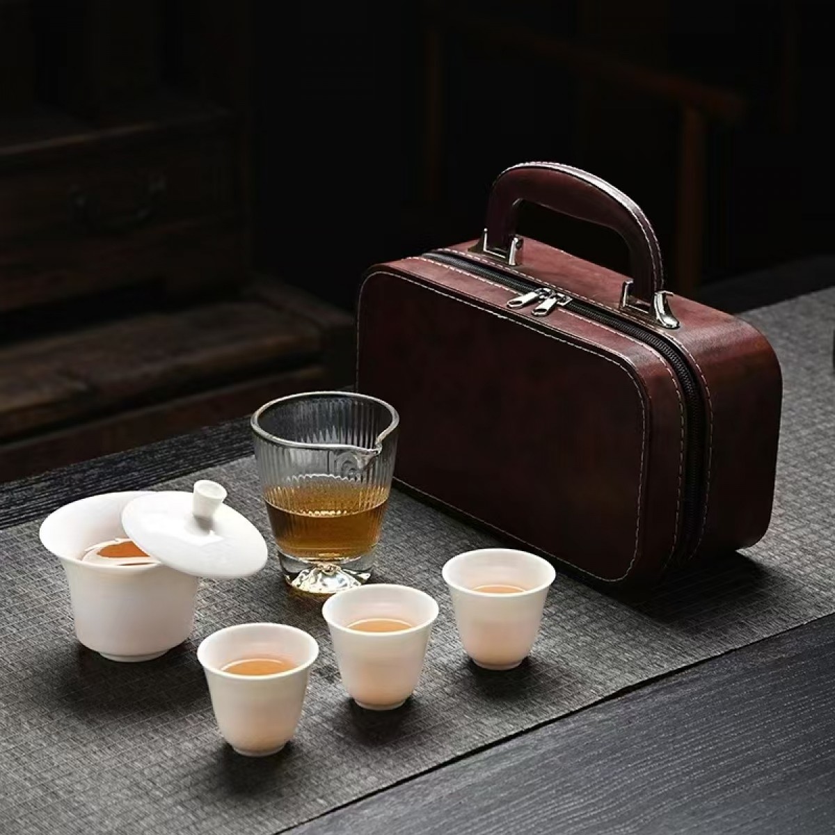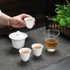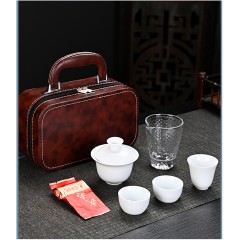 白瓷 旅行茶具/快客杯 盖碗+玻璃公道杯+茶杯+茶叶/盖碗+玻璃公道杯+茶杯