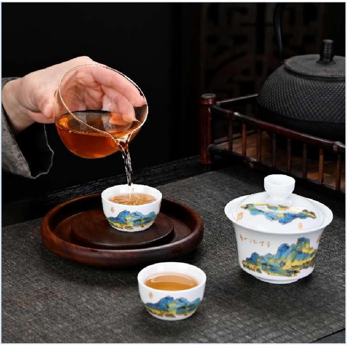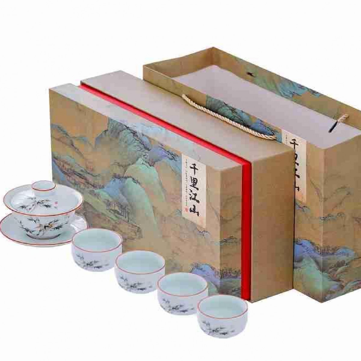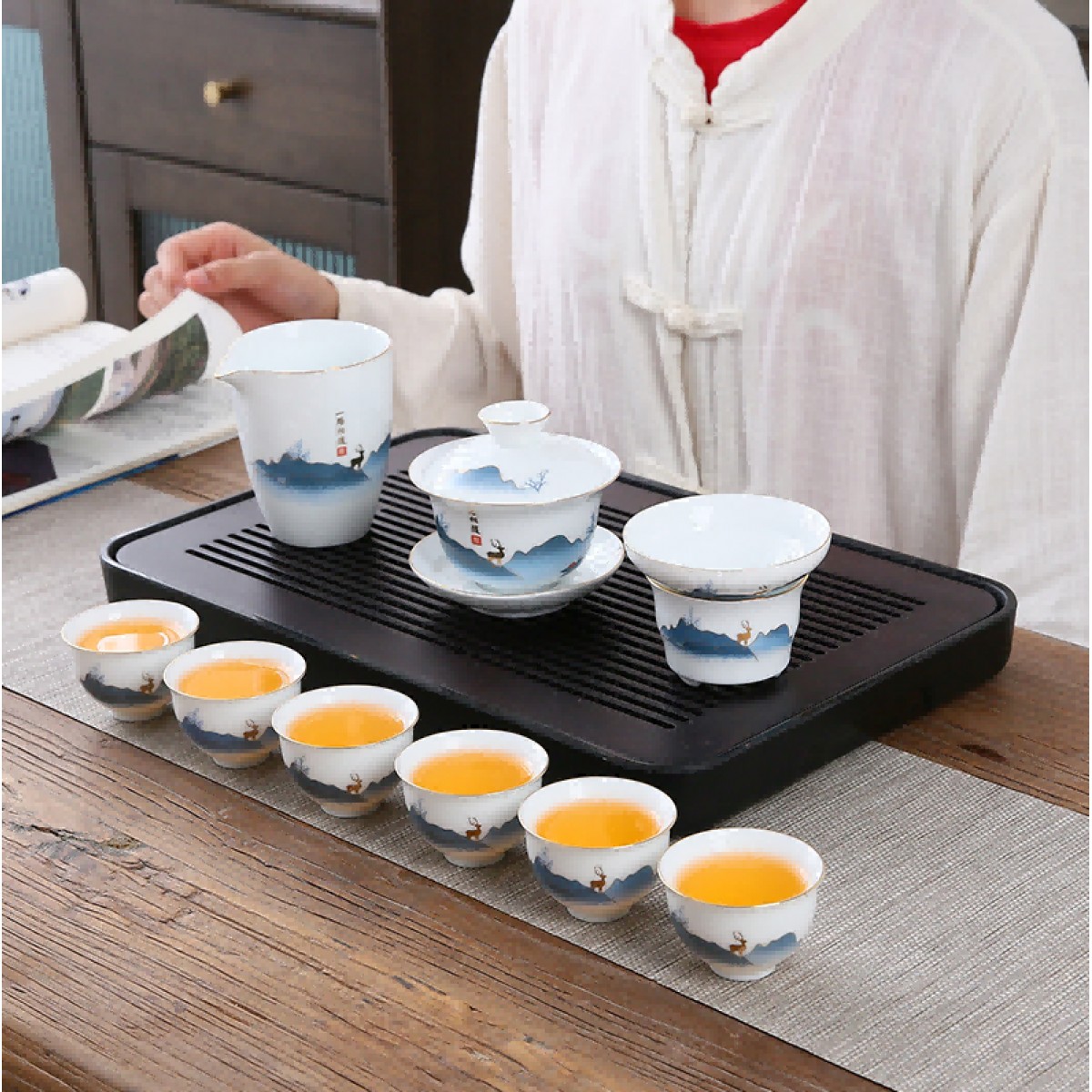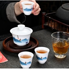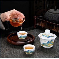 一路相随茶具套装 盖碗+公道杯+茶漏+茶杯