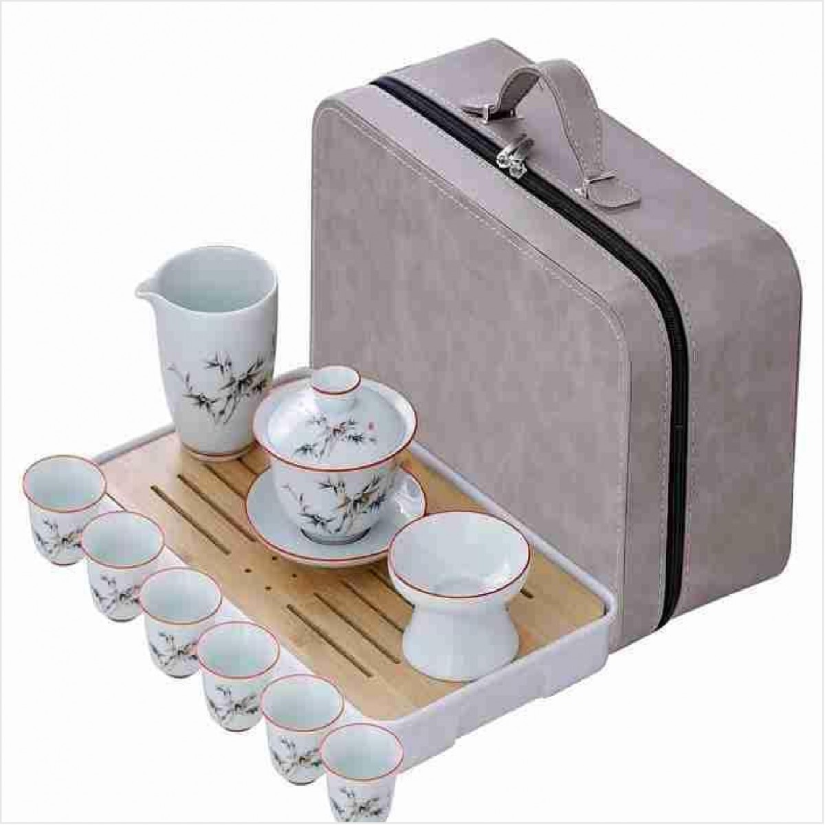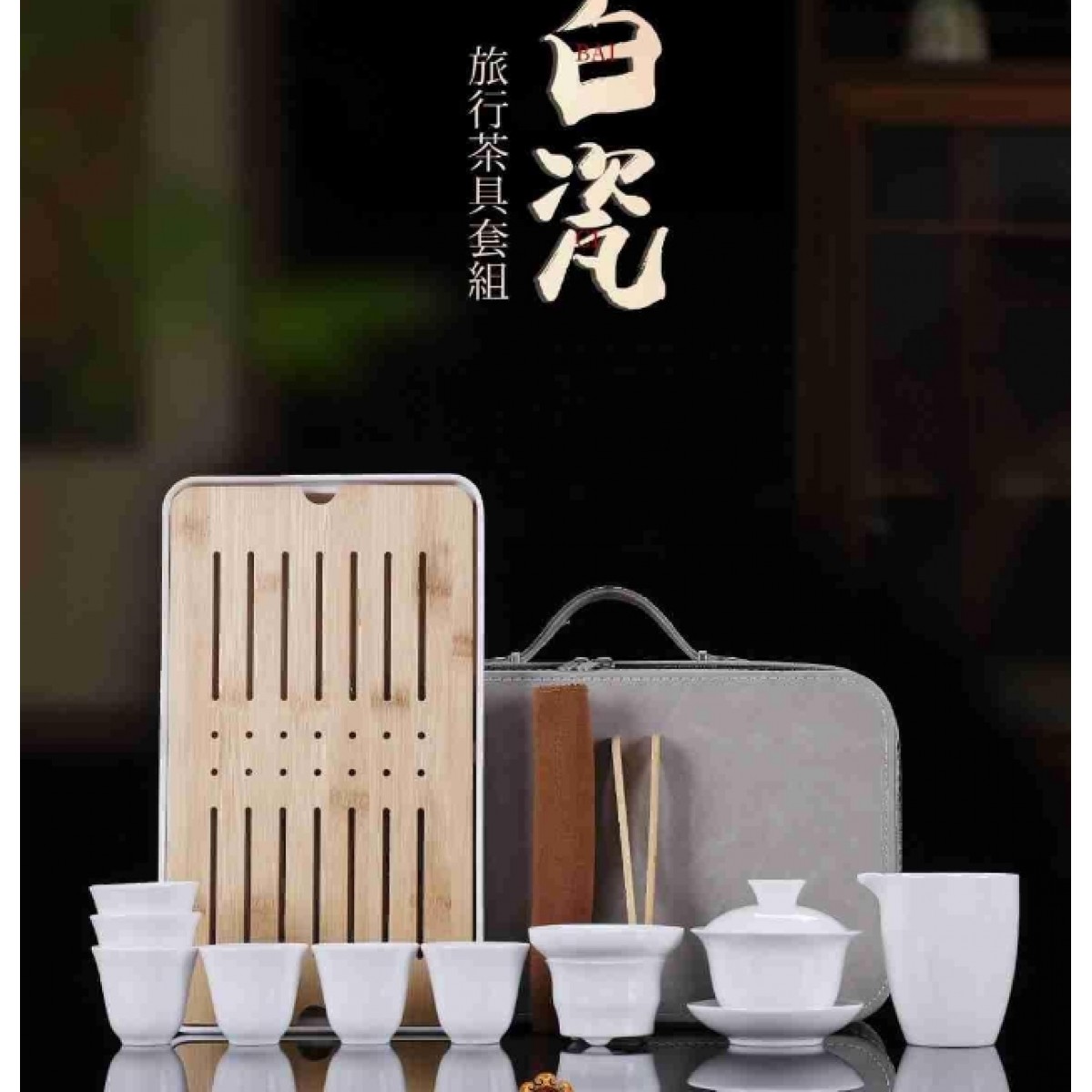 高白瓷旅行茶具 盖碗+公道杯+茶漏组+茶杯+茶盘+茶巾+茶夹