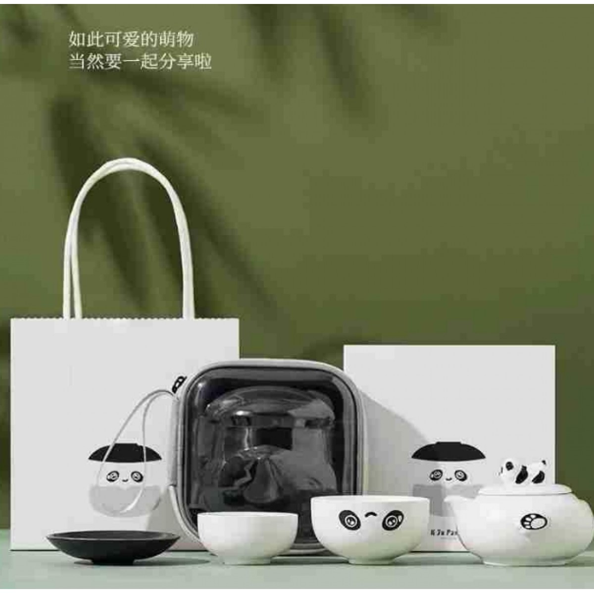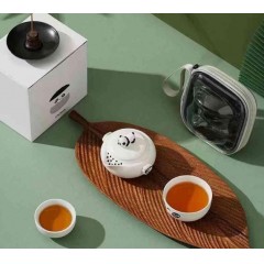 熊猫旅行茶具套装 壶+杯碟+杯