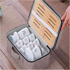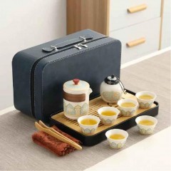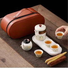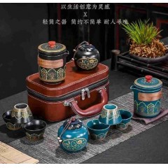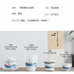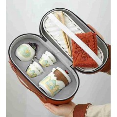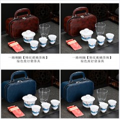 古韵旅行茶具套装 (花色--详询) 手抓壶+杯+干泡盘、茶叶罐+茶巾+茶夹