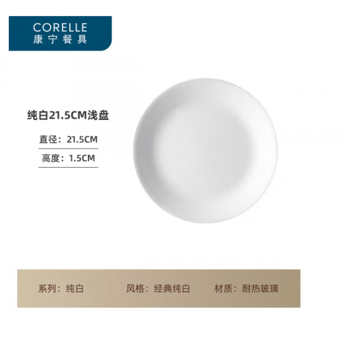 康宁餐具 CORELLE纯白21.5cm浅盘 108-N-LP