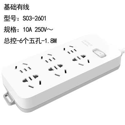 欧普照明(OPPLE)S03-2601 国标基础有线排插10A 250V~ 总控-6个五孔-1.8M