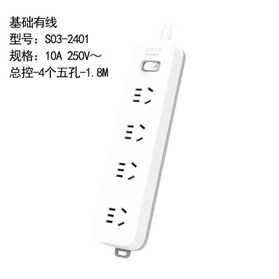 欧普照明(OPPLE)S03-2401 国标基础有线排插10A 250V~ 总控-4个五孔-1.8M