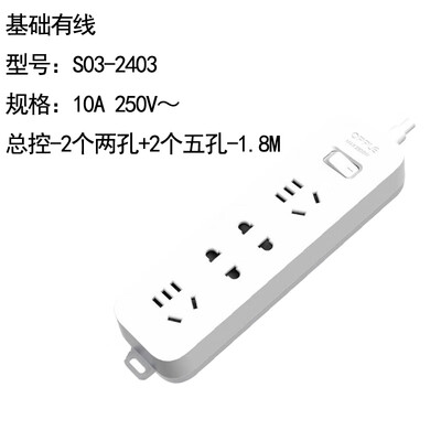 欧普照明(OPPLE)S03-2403 国标基础有线排插10A 250V~ 总控-2个两孔+2个五孔-1.8M