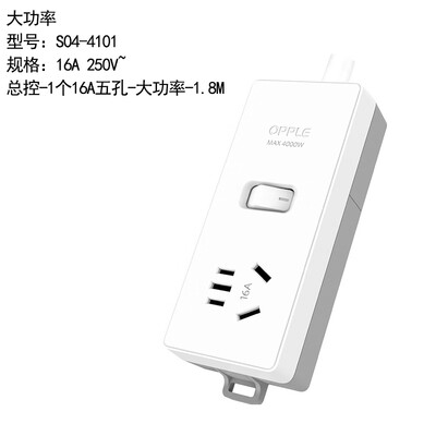 欧普照明(OPPLE)S04-4101 国标基础有线排插16A 250V~ 总控-1个16A五孔-大功率-1.8M