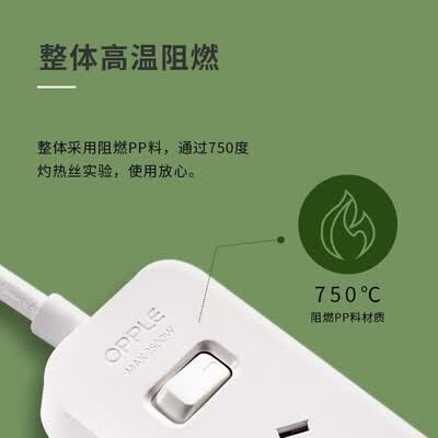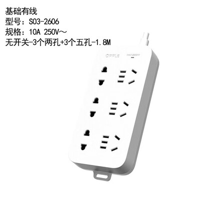 欧普照明(OPPLE)S03-2606 国标基础有线排插10A 250V~ 无开关-3个两孔+3个五孔-1.8M